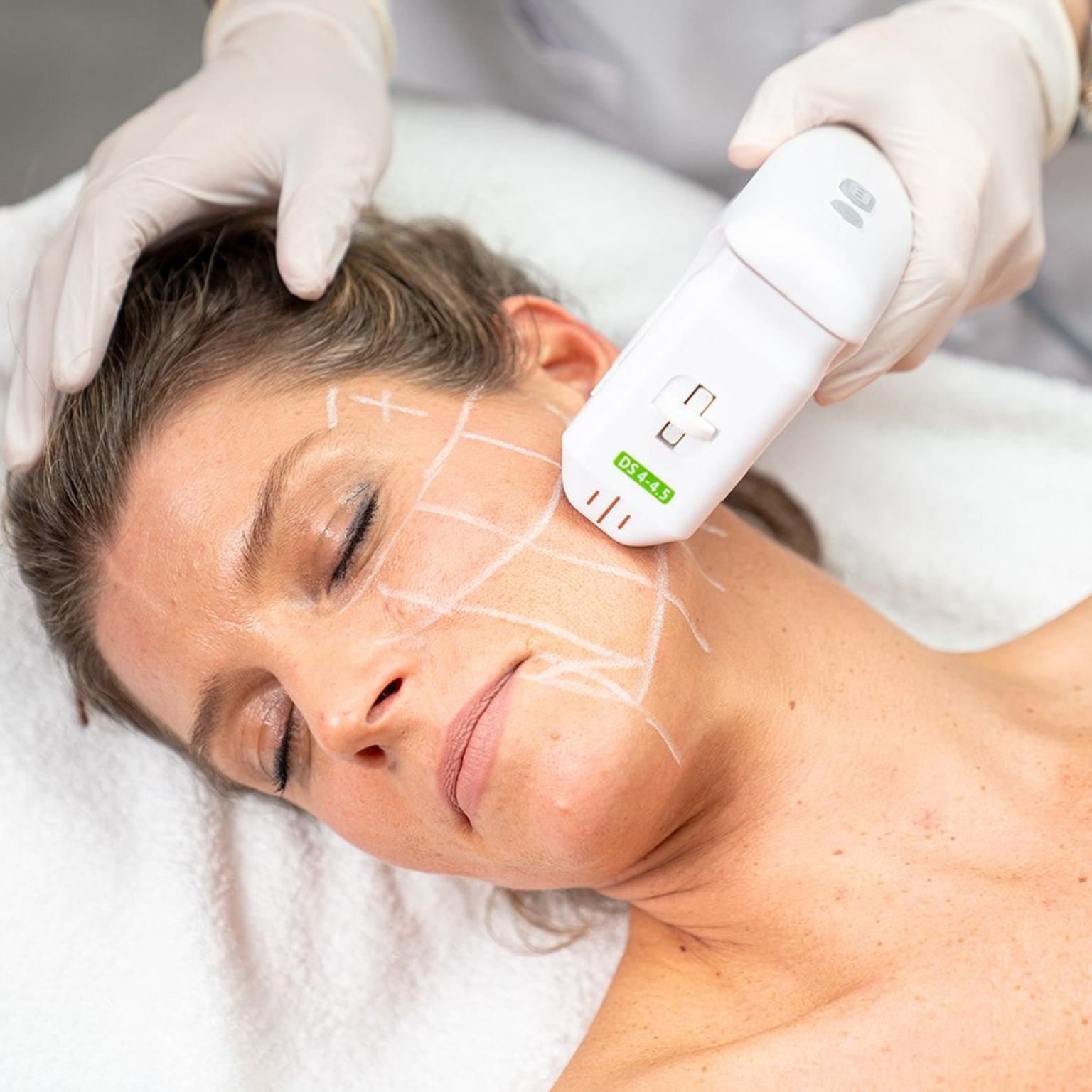 De behandeling is volledig non-invasief, wat betekent dat er geen snijden, prikken of hersteltijd nodig is. De ultrasone energie dringt diep door in de huid, tot aan de zogenaamde SMAS-laag, dezelfde laag waarop ook plastisch chirurgen werken bij een facelift.