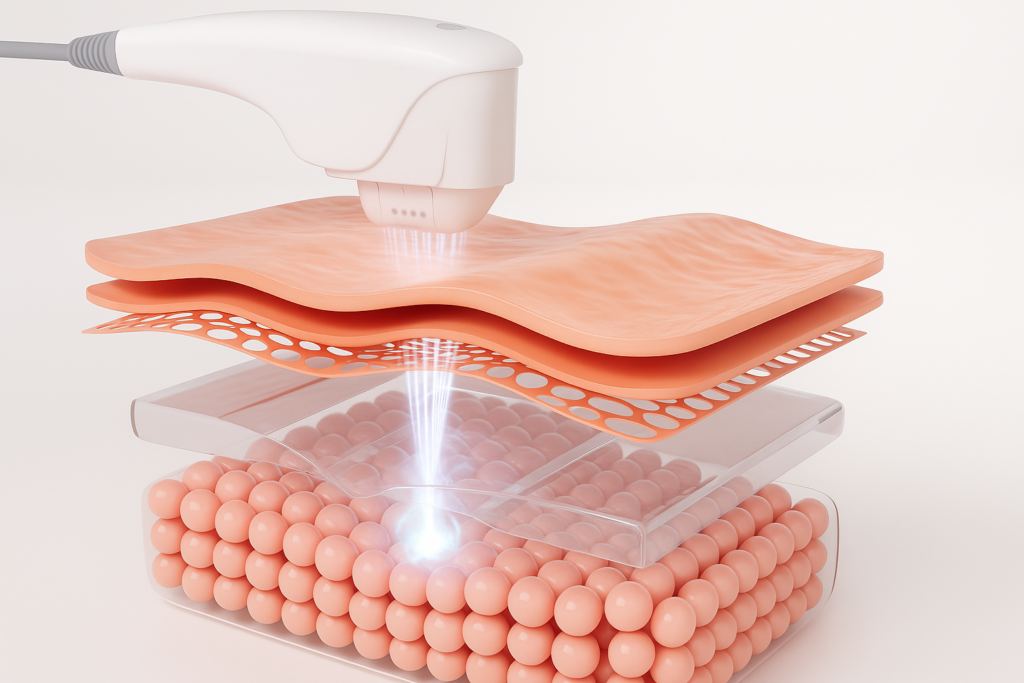 De warmte die vrijkomt, zorgt ervoor dat het lichaam nieuw collageen aanmaakt, wat de huid steviger en strakker maakt, van binnenuit. En dat allemaal zonder de huidoppervlakte te beschadigen.