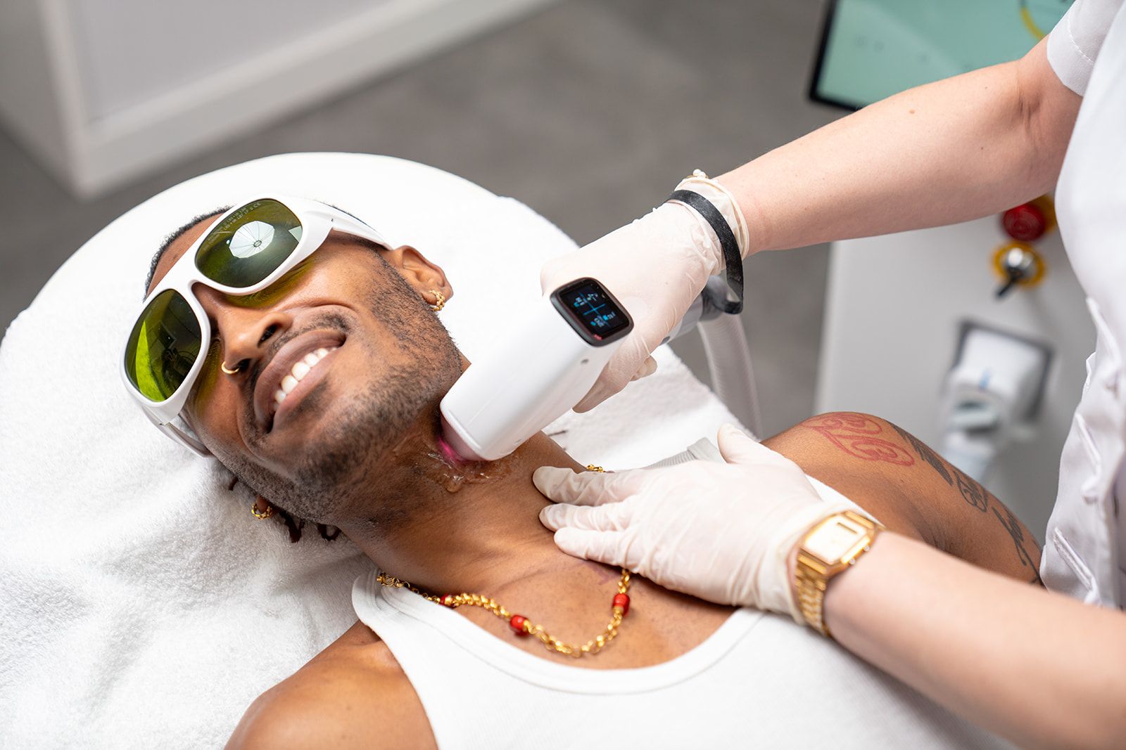 Een behandeling van het gezicht duurt gemiddeld45 tot 60 minuten. Kleinere zones, zoals de kaaklijnof oogcontouren, nemen minder tijd in beslag.