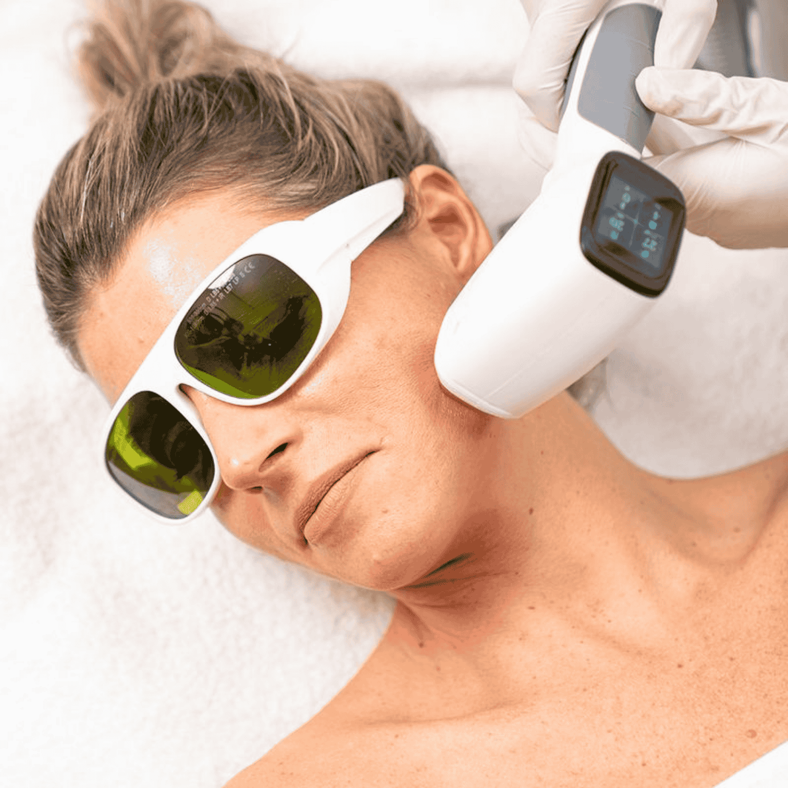 Daarna wordt het behandelgebied voorbereid. Indien nodig wordt het gebied afgetekend met een huidpotlood en wordt een speciale gel aangebracht. Je ogen worden beschermd met een speciale veiligheidsbril.